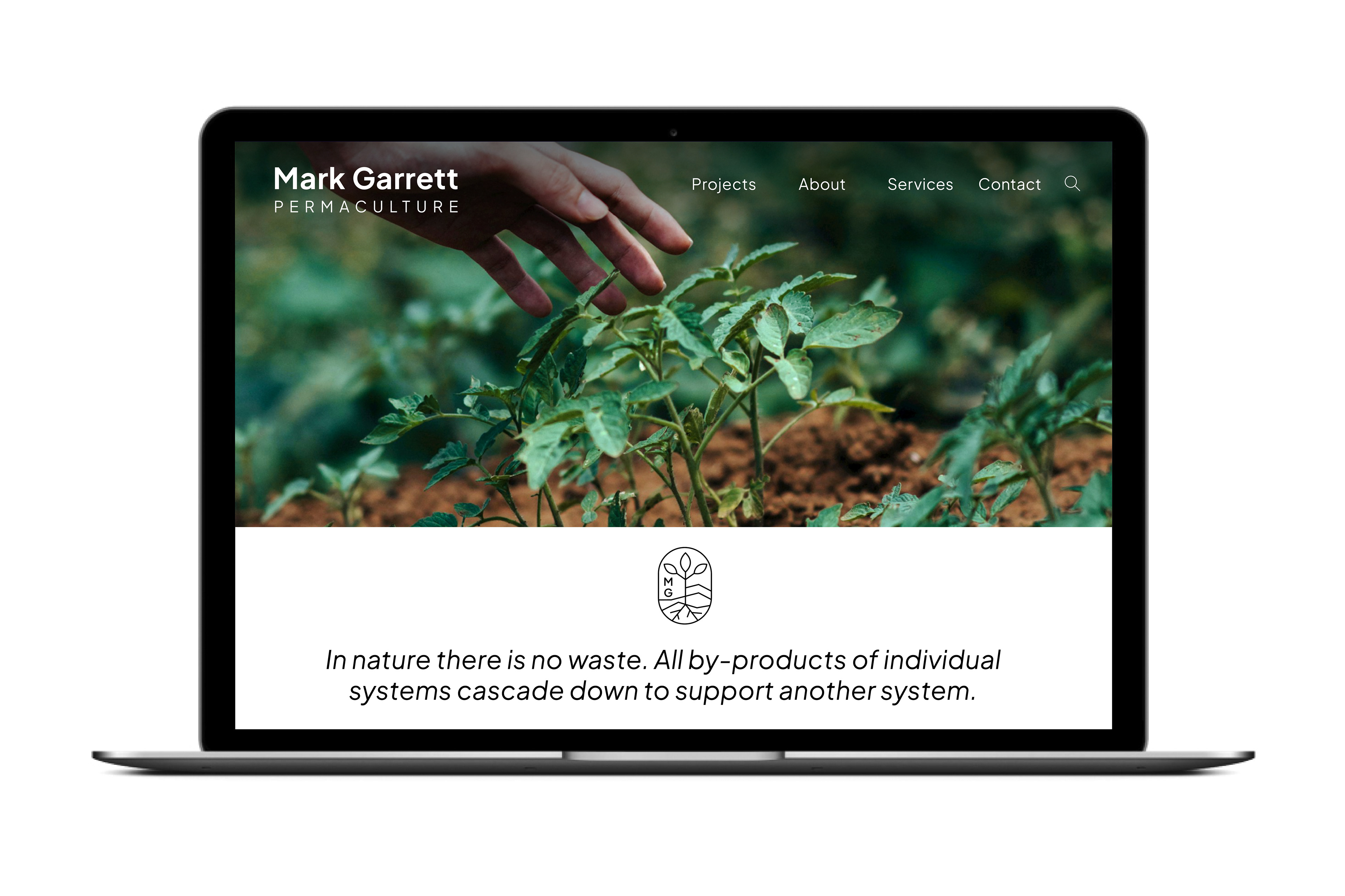 Vierzig Jahre. Sechs Kontinente. Eine Disziplin. Mark Garrett gestaltet regenerative Systeme für Privatpersonen, Luxusresorts, Gemeindeschulen und nationale Regierungen — spezialisiert auf Permaculture Design, organisches Abfallmanagement und zertifizierte Ausbildung in mehr als zwanzig Ländern weltweit. Wir entwickelten einen Markenauftritt, der dieser Tiefe gerecht wird. Eine Sprache, die so funktioniert wie Permaculture selbst – jedes Element erfüllt eine Funktion.